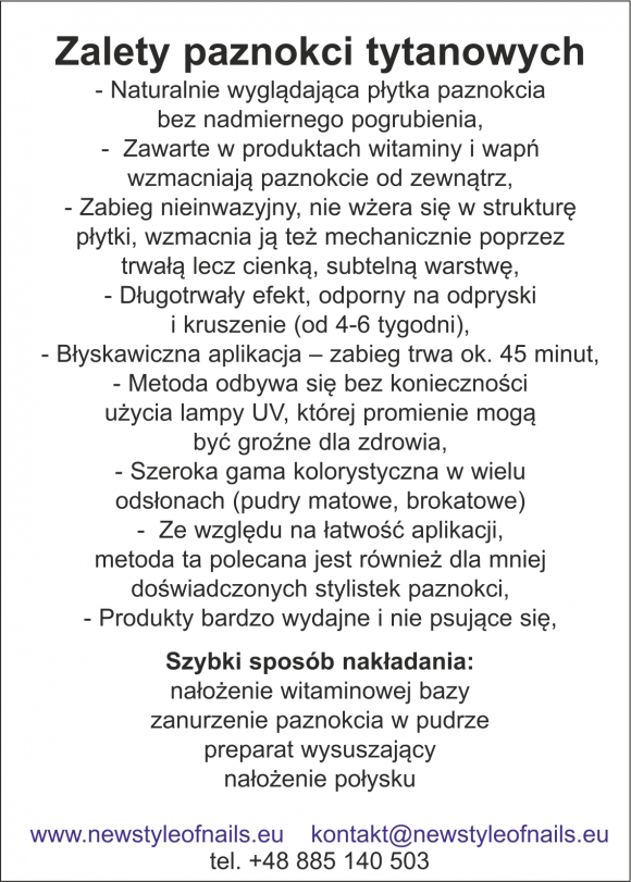 Ulotka reklamowa z opisem zalet Manicure Tytanowy dla salonów kosmetycznych rozmiar A6